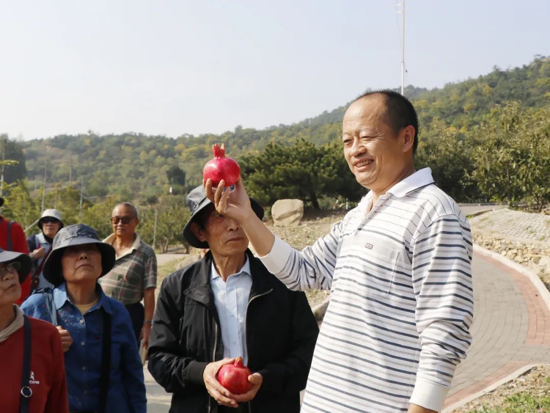 在果树所金牛山基地和万吉山基地,老同志们现场参观了葡萄、石榴、柿子等果树种质资源,听取了优良品种选育、现代高效栽培、果品贮藏加工等方面科研与技术推广情况介绍,详细了解了基地建设运行和科技成果转化情况。大家一边参观一边亲身体验采摘过程,沿着金秋的脚步,感悟着党领导人民取得的伟大成就,追忆着往日时光,气氛十分热烈融洽。苹果、石榴、柿子等各种水果色泽鲜艳,香味扑鼻,老同志们一路采摘与品尝,欢声笑语不断。